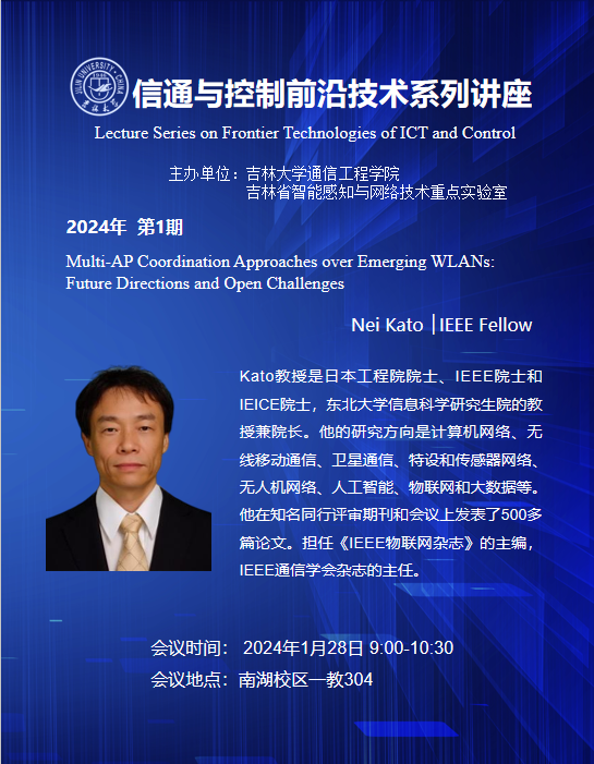 关于2024年第1期举办信通与控制前沿技术系列讲座之Nei Kato教授线上学术交流会的通知