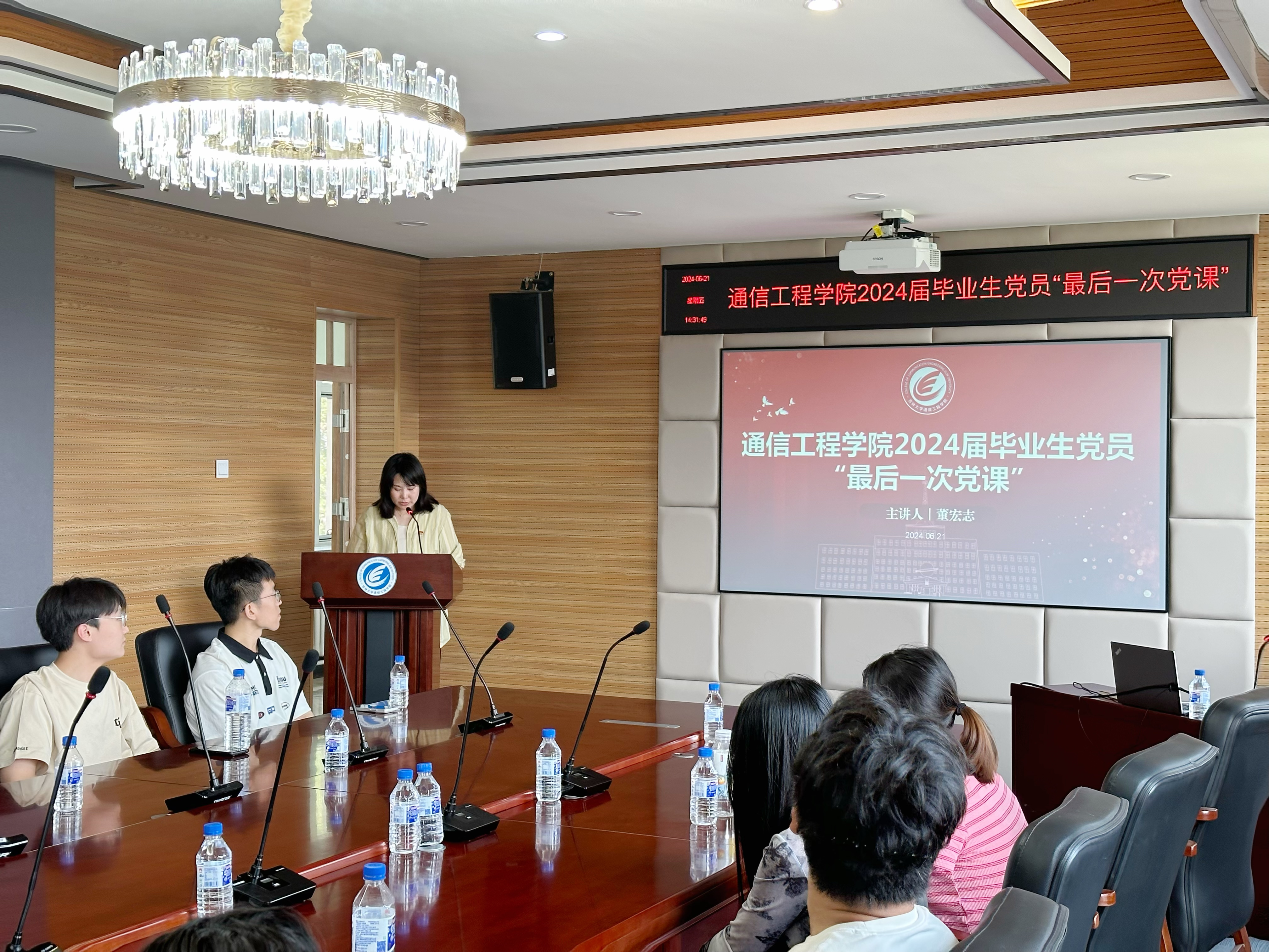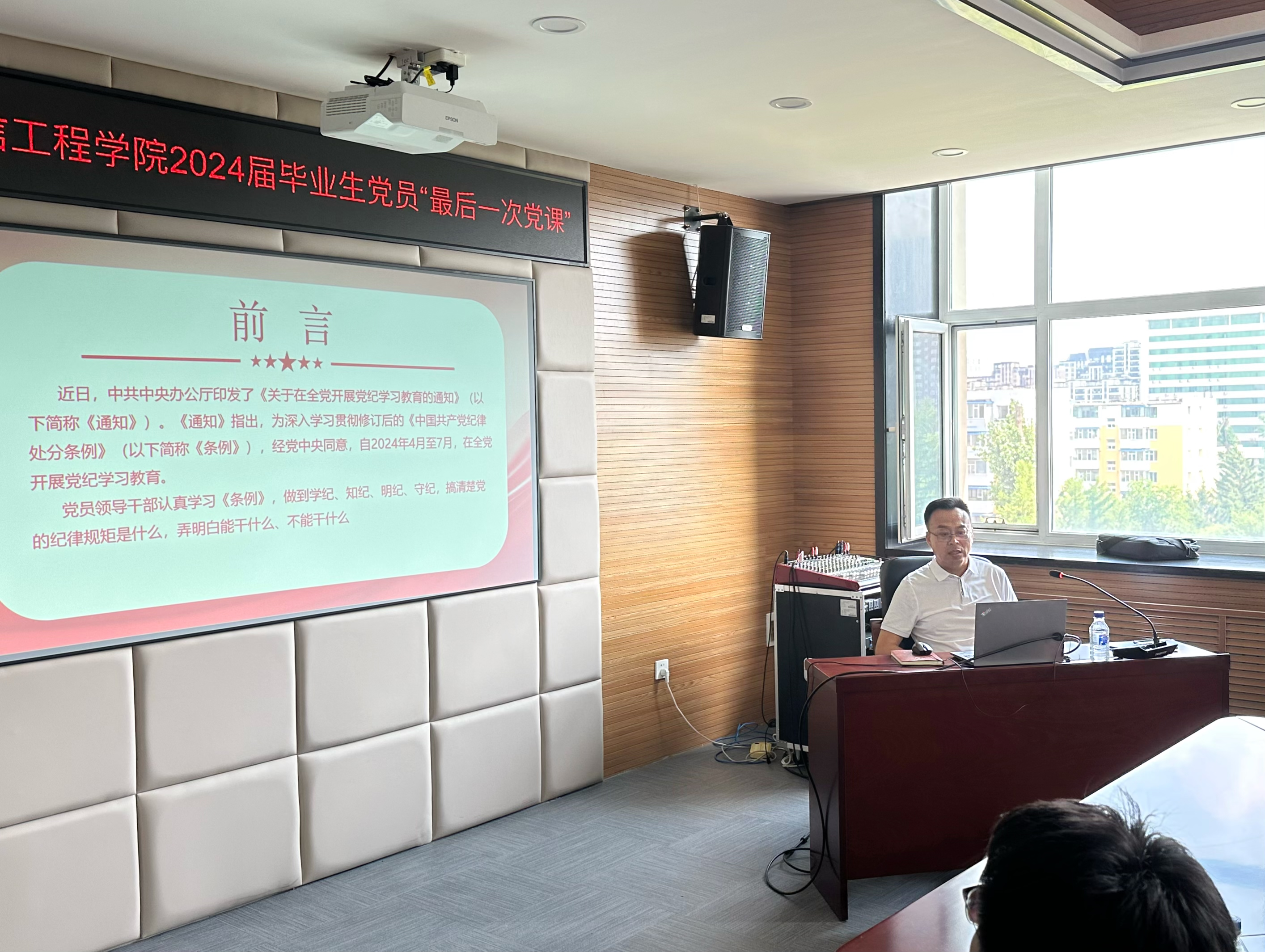 为深入贯彻落实习近平总书记关于党纪学习教育的重要讲话和指示精神,引导毕业生党员坚定理想信念,6月21日,通信工程公司党委书记董宏志为2024届毕业生党员讲授“最后一次党课”,党课由公司党委副书记刘星彤主持。