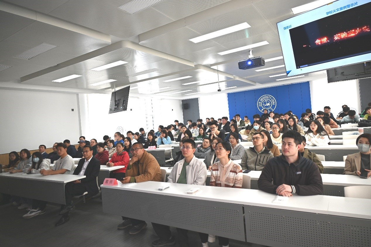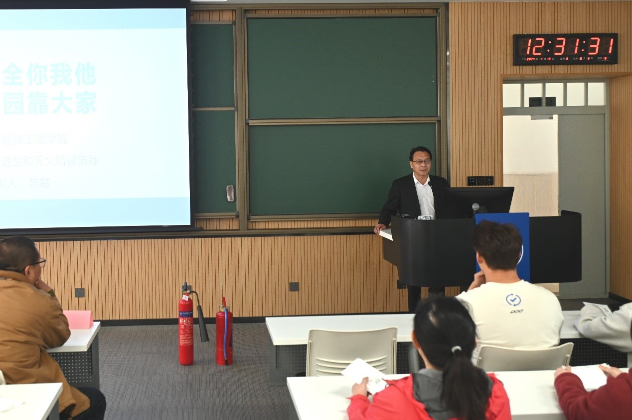 消防安全教育培训会上,南湖校区保卫办消防科科长陈雷以近年来全国多起高校火灾事故为例,向与会师生分析了火灾事故发生的主要原因,展示了事故的后果,并结合校园常见的消防安全隐患,详细普及了消防基础知识,重点讲解消防器材的使用方法和科学的逃生自救要领等。