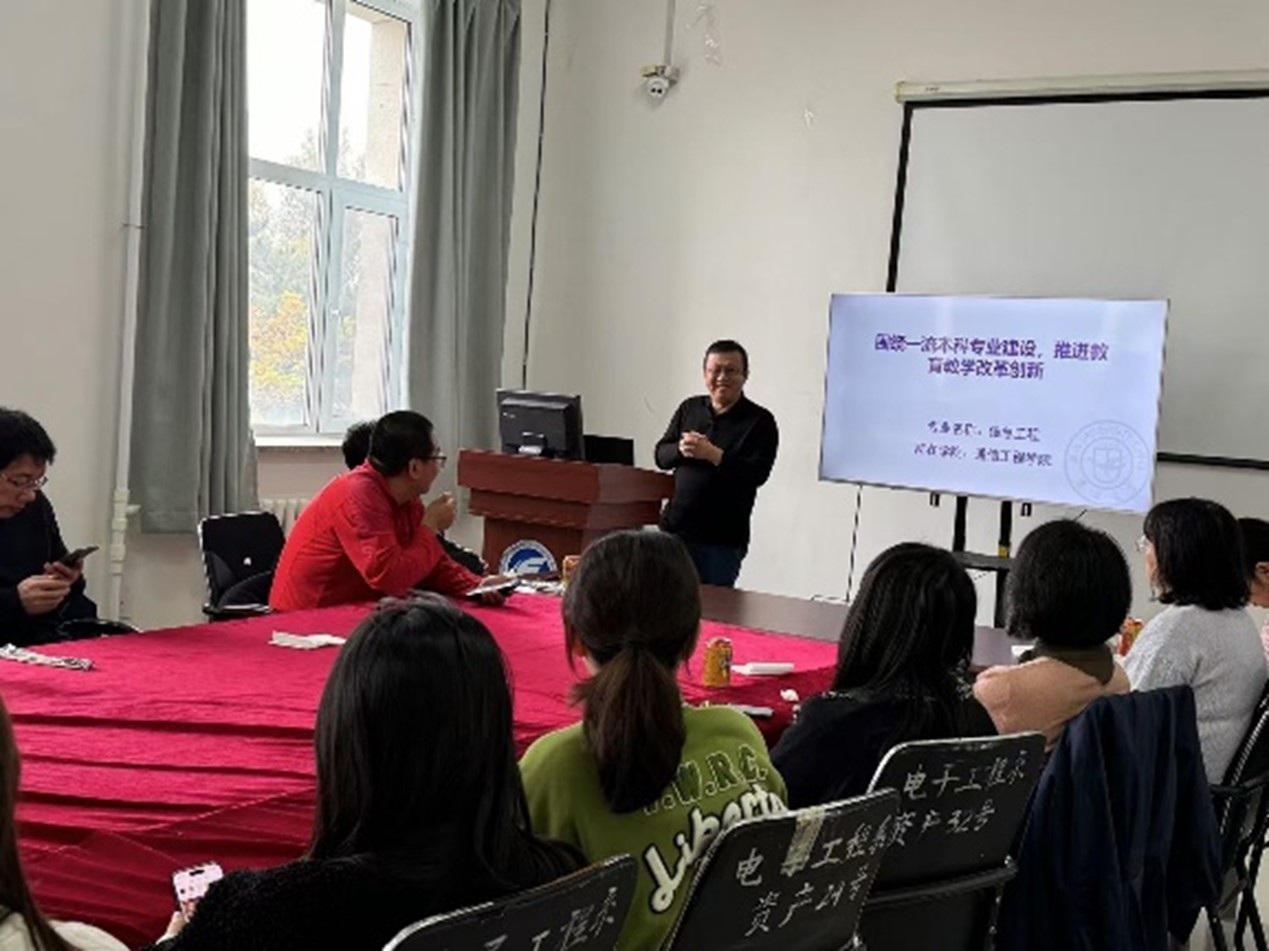最后,电子工程系副主任姚桂锦教授结合最新的工程教育认证标准,分析了当前课程设计中的不足之处,并提出了针对性的改进建议。姚老师的分享为教师们提供了宝贵的参考,有助于进一步完善课程体系,提升教学质量。