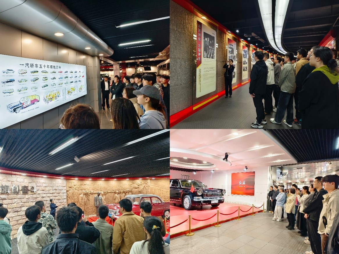 红旗文化展馆是国家级工业示范基地、全国爱国主义教育示范基地,它承载着我国民族汽车工业的记忆与精神。展馆内,以历史文物、图片资料与文字记载等形式全面展现了中国第一个自主汽车品牌的发展历程。在讲解员的带领下,同学们依次参观了各个展厅。从新中国第一辆国产东风牌小轿车到历届国家主席检阅车,同学们见证了中国汽车工业从无到有、从弱到强的艰辛历程,也深刻感受到了科研工作者艰苦奋斗、自力更生、勇于创新的工业精神。