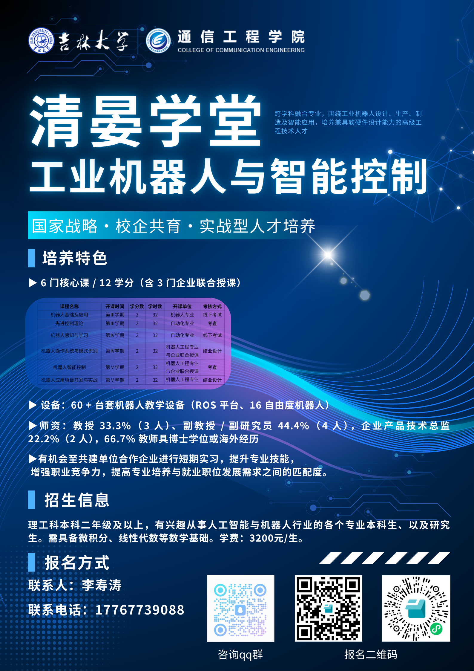 工业机器人与智能控制作为一门跨学科的综合性专业,在学员具备了本科专业素质的基础上,围绕工业机器人的设计、生产、制造及智能应用,进行相关人才的培养,对新工科的发展建设具有重要的价值与意义。